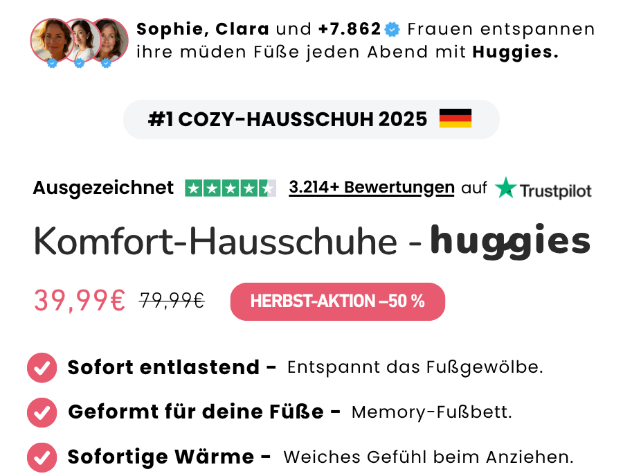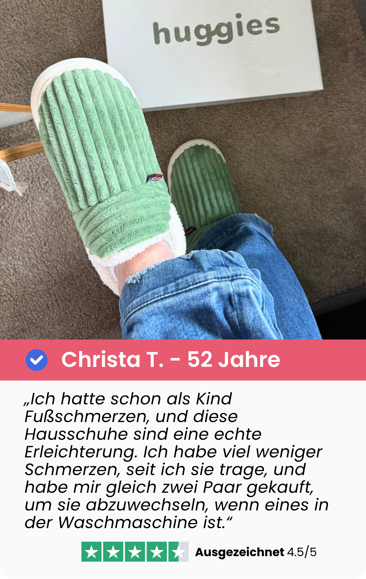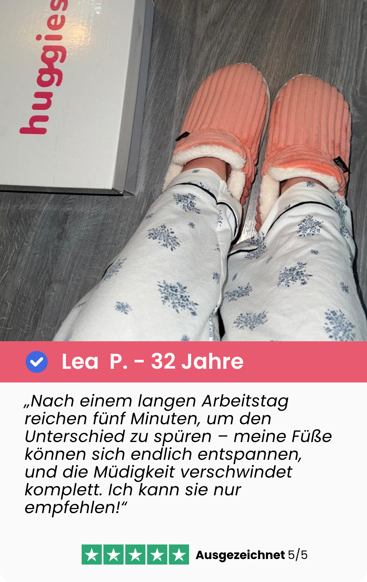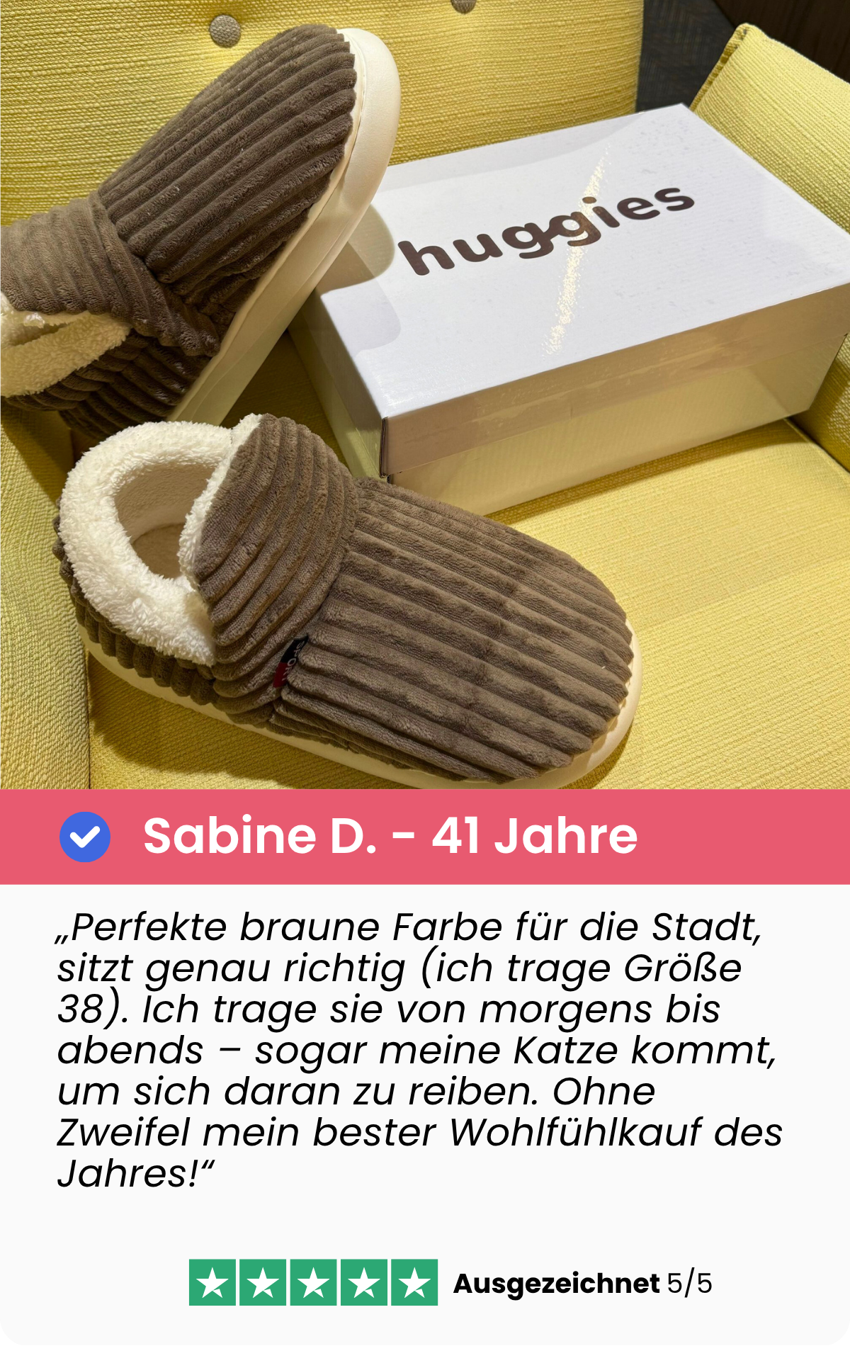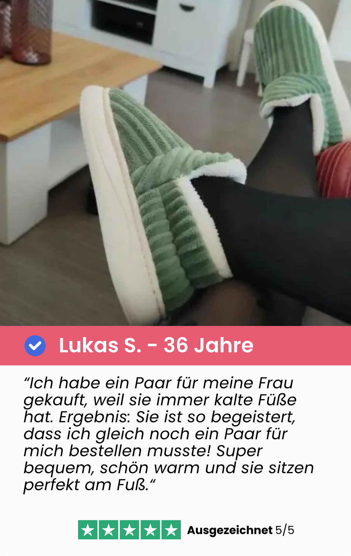 Ich habe sie meiner Mutter geschenkt, die immer kalte Füße hat, und sie rief mich ganz gerührt an: „So bequem war ich zu Hause noch nie!“ Sie trägt sie ständig – und die kleine Geschenkverpackung kam super an.